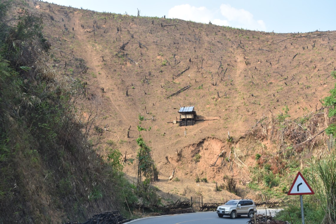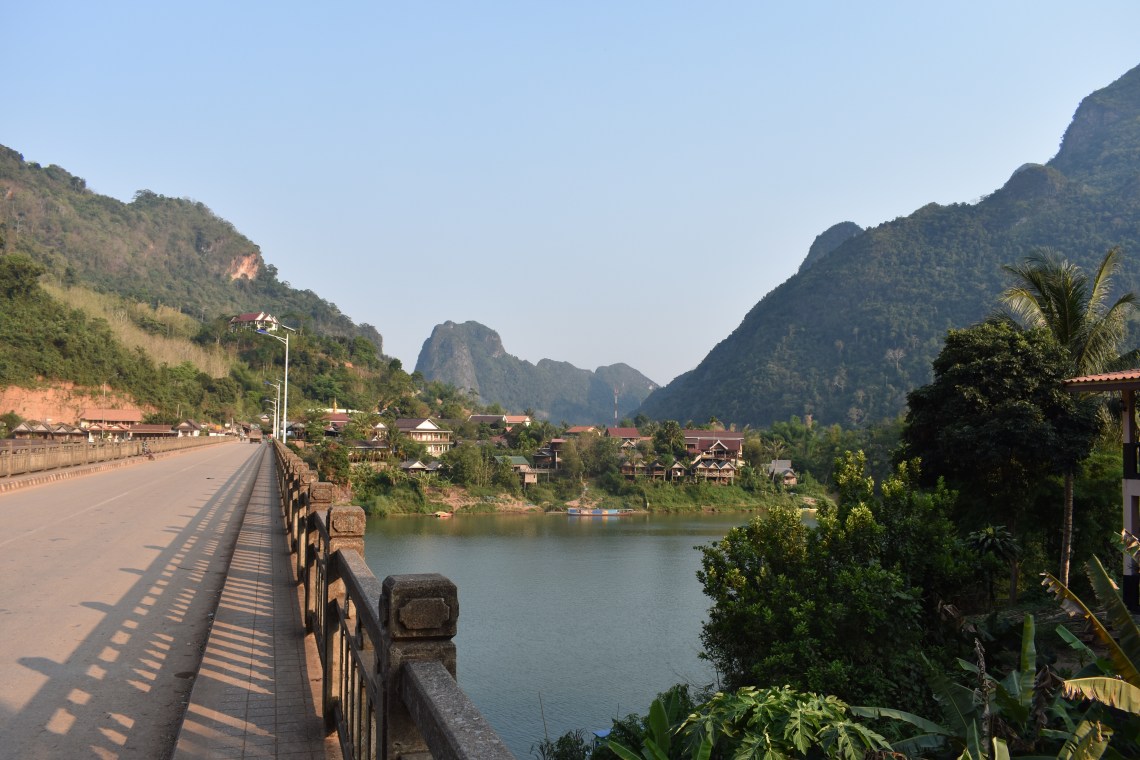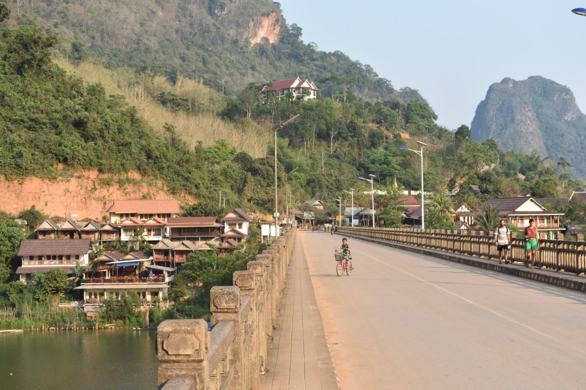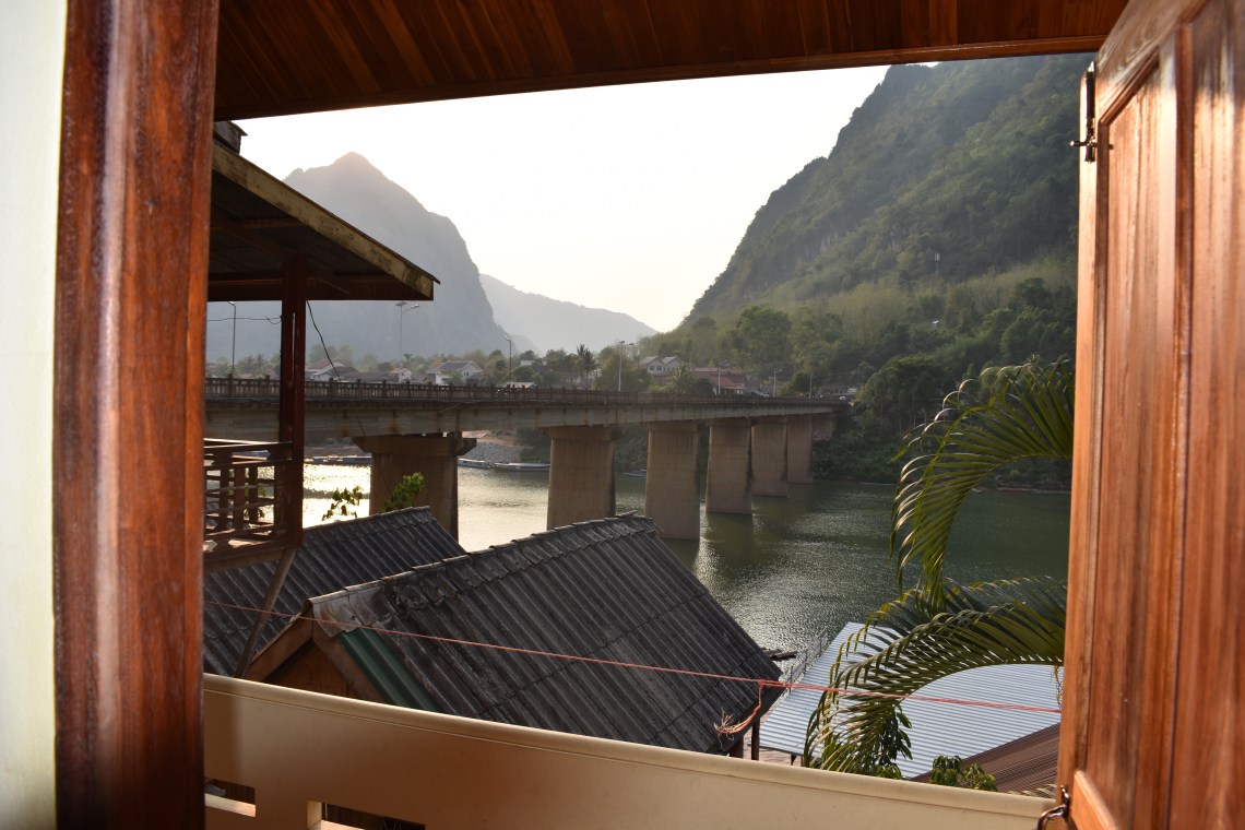 I’m glad I set the points yesterday as the road is once again in poor condition. We are heading to a remote province, and a guesthouse which is a much easier drive. The guesthouse is across a bridge set among giant towering jagged hills. The sides are steep and close. Guesthouse is very basic and padlocked from the outside! Air con hardly works. But this is the real Laos.
