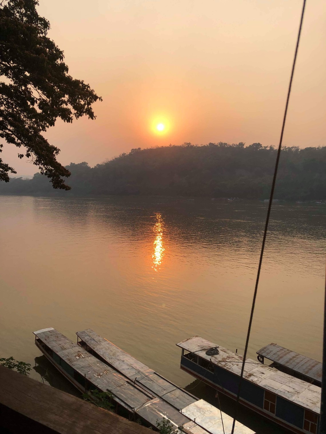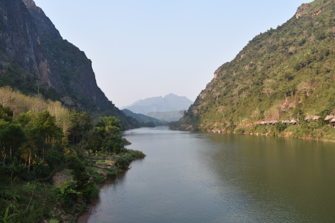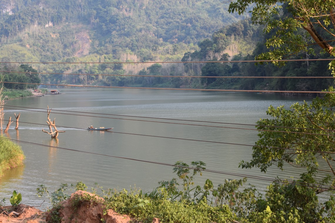 We leave some laundry with one of the women who weighs it. 10,000 Kip per Kg. Dinner is on a deck over looking The river Ou. A busy river with long boats and lights on the banks blinking in the dark. At dinner we see our washing hung quite carelessly over the rails of the restaurant decking? For all the guests to see!