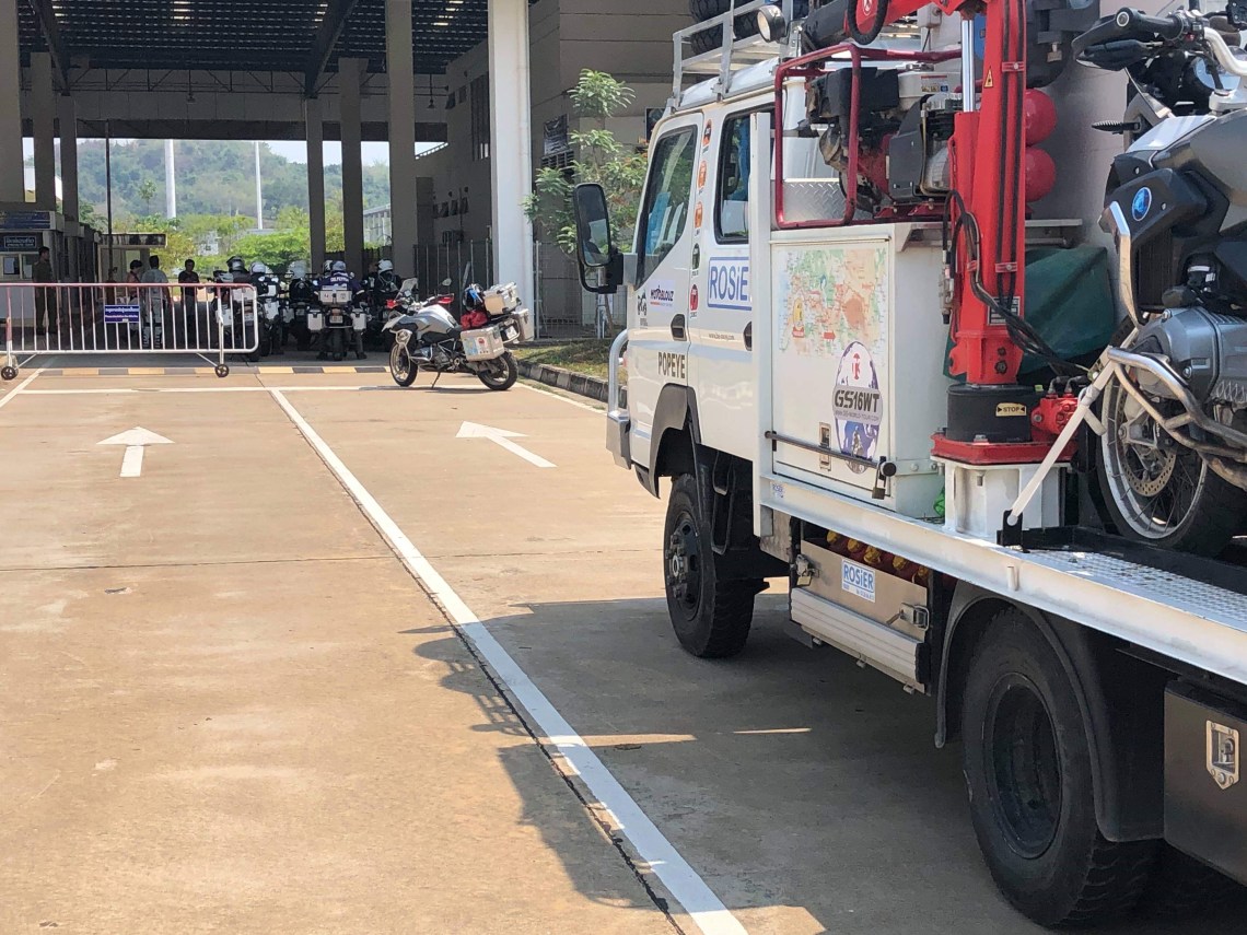 Good humoured and fun. They have been exceptionally professional. Their ability to adapt and arrange say a mechanic when required was great. We leave Thailand, and it’s semi orderly roading, albeit with drivers who crisscrossed around you on the road, the humidity and heat, temples, and roadside shops selling fresh fruit, and enter Laos.