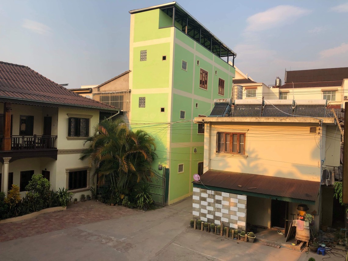 Our first night is in a lovely guesthouse called ‘Thoulasith Guesthouse’. Simple, with a court yard and a balconied landing at each level.