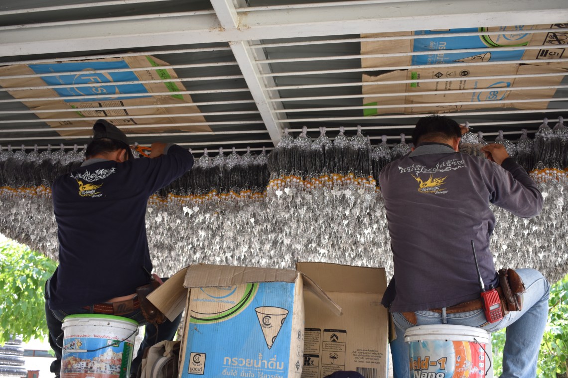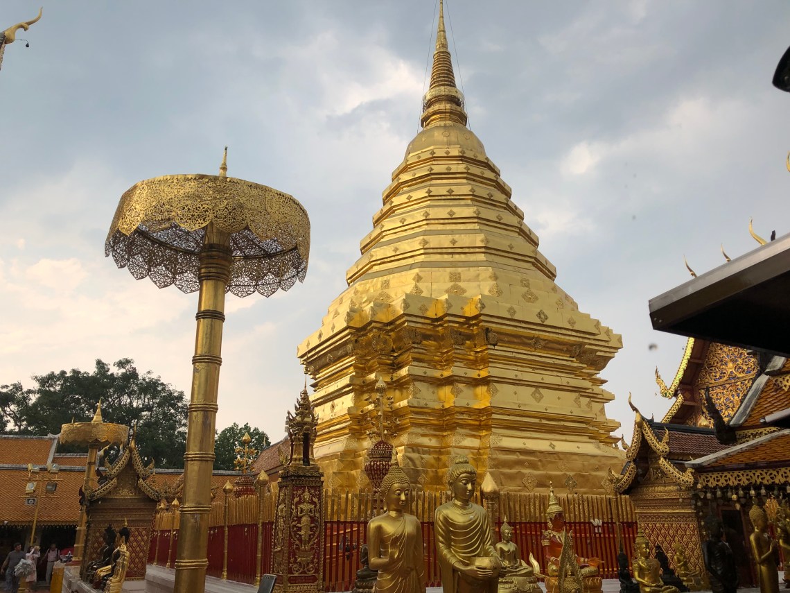 The drive today is yet more hills and tight bends. Despite this Julia is a little more relaxed. It is some distance, which we break up with a stop for lunch. (Rung loves her food). As we enter Chiang Mai, there is a storm blowing. The roads are littered with branches and it’s raining quite heavily. Looket is keen to keep to her schedule, of sites and places of interest. Through the driving rain we visit a large temple a top the highest point in the city. As we reach the very top, it is a tranquil and peaceful place, now the rain has miraculously stopped. The tranquility surprises us both as we fought to get there through a hoard of very noisy Chinese tourists. The temple is bright and glimmering with golden statues and golden pagodas. Its late afternoon and I’m conscious that our garage closes at 5pm, so we head straight for the garage of the Land Rover people. Their yard is full of new Landys, very few of which are ‘Series’. In order for the engine to cool, we leave it over night and are reassured by the various people who are there to greet us, that all will be ok. The woman who appears to be the boss, has amazingly sourced a new water pump from Bangkok at a cost of 6000 Baht. This is roughly the cost I paid not three months ago, to get one from the UK. Her price for labour was agreed over the phone, but she now says” maybe we discuss price tomorrow”! Mmmm.