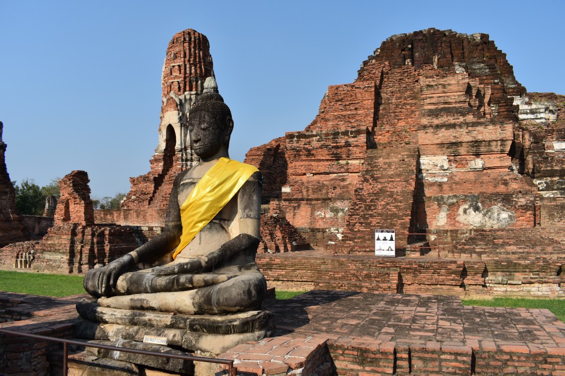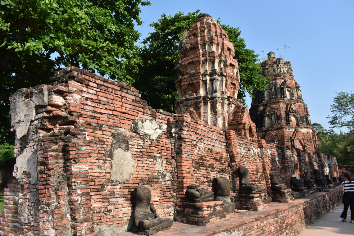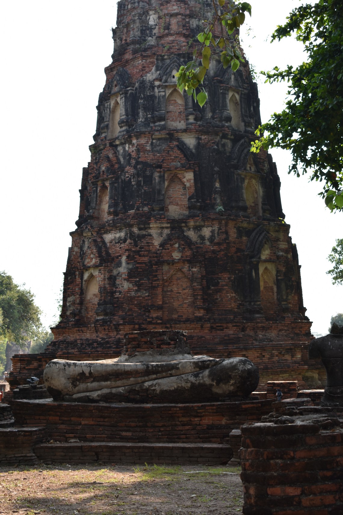 Ayutthaya is rich in the history of Thailand and this region. Particularly its religious and regal history. The historical park comprises vast and intricate temple ruins. There are actually four temples at this site and a Royal Palace. (The temples :Wat Phra Ram, Wat Phra Si Sanphet, Wat Mahathat and Wat Ratchaburana.) You can only imagine the grandeur and how they might have looked, tall, imposing and bright white from the plaster that covers the millions of small red bricks mortared together that enable the forms to occur. The plaster is long gone leaving piles of red bricks.