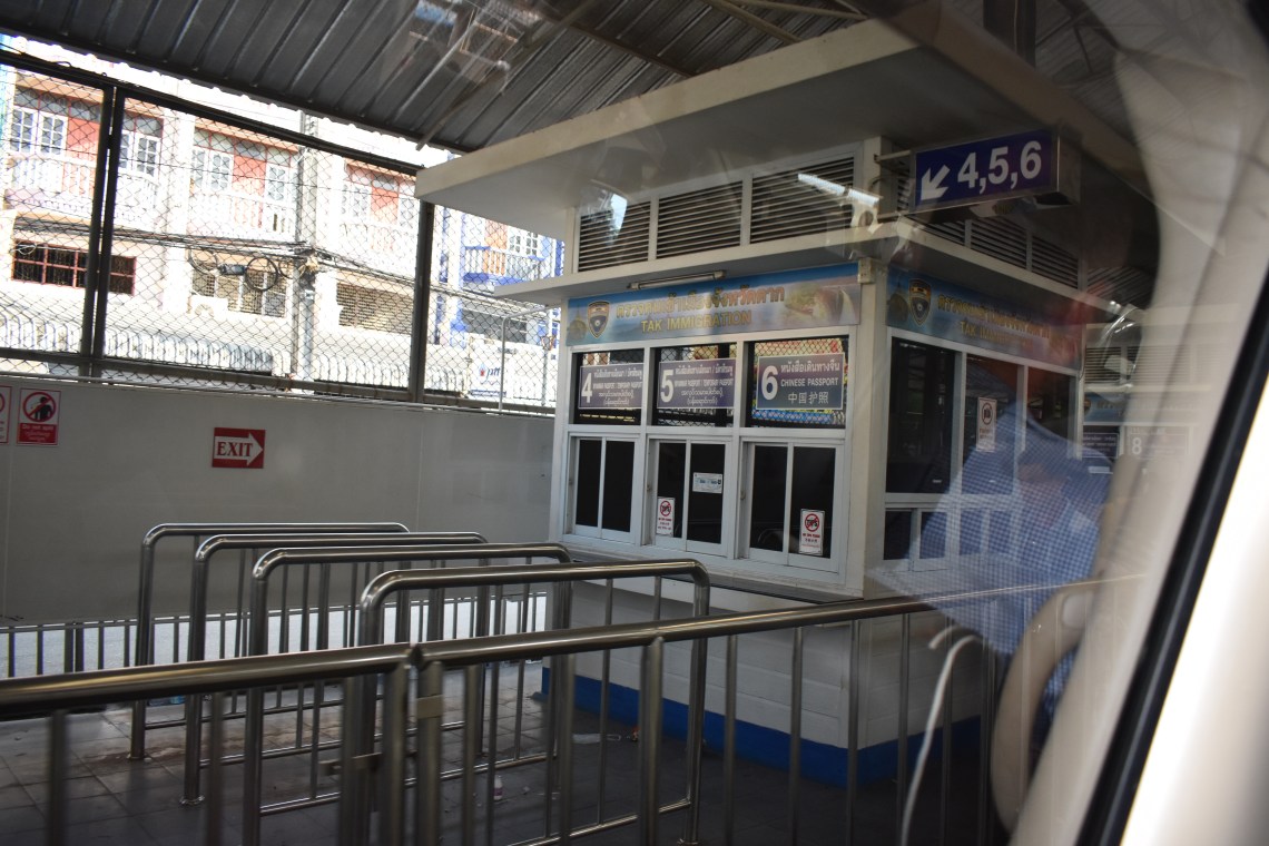 The crossing however is chaotic. There are hundreds of people every where, queuing at windows, up to 20 windows, each window for different purposes. Foreign and Thai passports, Myanmar passports ,work visas, etc etc. we told to queue to window 14 then as we eventually get to the window are told that we should be “over there”? So queue again. Meanwhile the noise and hustle and bustle is incredible. People jumping queues, families escaping the conflict in Myanmar for a better life, with all their possessions in plastic bags. Rows of young men all wearing the same employment agency t-shirts, holding their new passports up in the air, before crocodile walking to waiting busses. Then shortly after the same with a group of young women. I presume they have signed up for work in Thailand? They all have the look of hope on their faces. Eventually we have to cross the road and into an office where there is a man, who doesn’t appear to work for immigration, due to his casual mufty clothing, but apparently does! is directing operations. We are ushered to the front of the queue like dignitaries, and hand over our passports. He also says that is will cost 1500 baht? As our entry to Thailand with a vehicle for two weeks was only 30 baht, we question this but due to the commotion and chaos around us we eventually hand over 2000 baht whereby he promptly hands 1000 back saying “1000 enough”. It’s all a bit slack and not at all formal. Our passports will be stamped and we can come back and collect them later but it must be before 8pm that same day? Again I’m not comfortable leaving the passports nor paying the money, but we were warned of corruption in various places. This I guess is one of them!