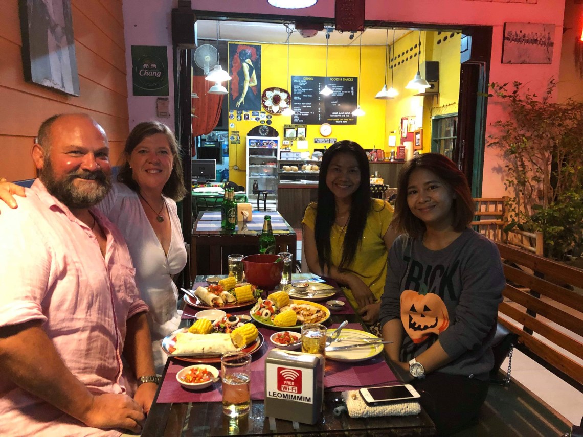 That evening we check in to Chiang Khong, the last town before Laos. Our last evening in Thailand, and also the company of Looket and Rung. They have been brilliant as guides and we will miss their company. We have a farewell meal out before we say goodbye in the morning. It’s also my mothers birthday. So a lovely phone call to her in Yorkshire, ends a busy and fabulous day.