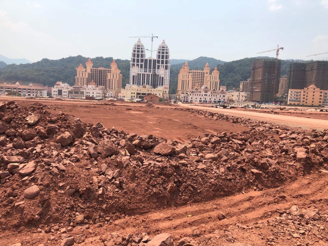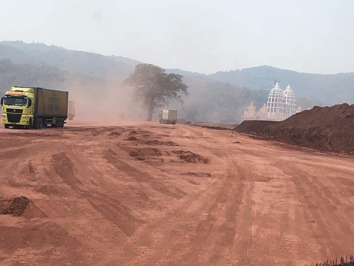 Along the way we encounter more of the many trucks rumbling all over the roads, carrying dirt and concrete. Of course there is more of the red dust that lingers in the air around the construction sites and is billowed up by the trucks. The sheer scale of the work being done is astounding and on a HUGE scale.